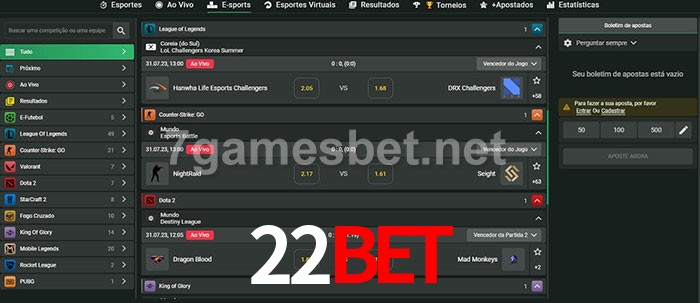 A aposta 22bet oferece aos jogadores a experiência mais conveniente de apostas em eSports!